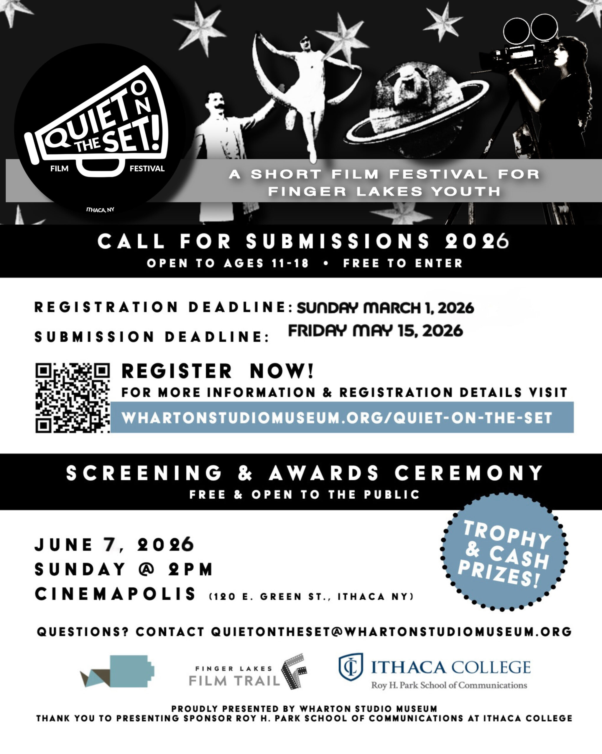 Screening & Awards Ceremony takes place Sunday, June 7, 2026 at 2pm at Cinemapolis in downtown Ithaca, NY.